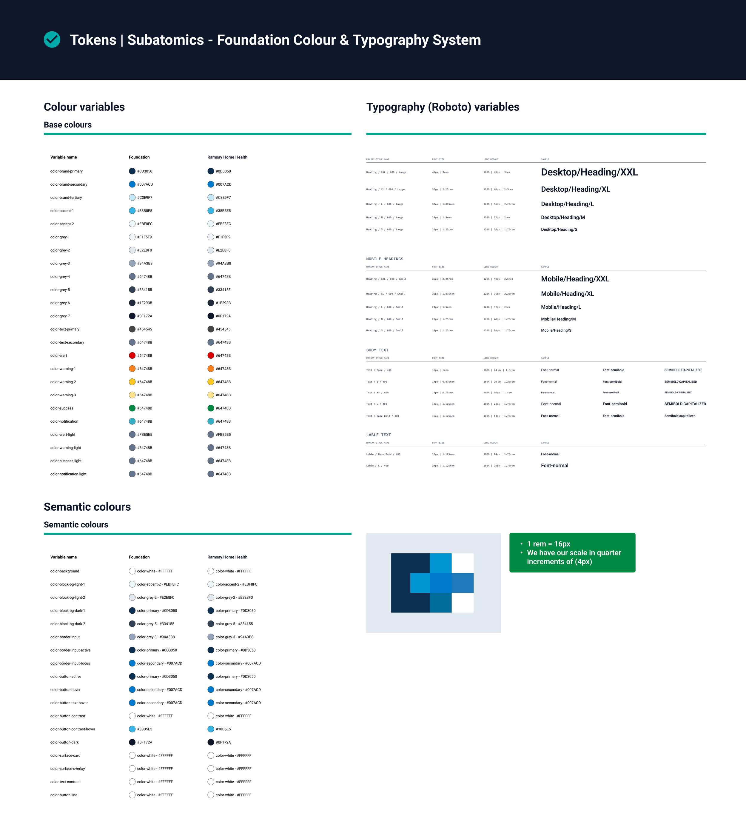 Colour system (base + semantic colours)